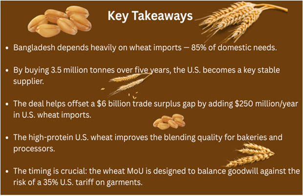 Beyond trade figures, Bangladesh's choice to sign the wheat MOU conveys significant messages. In the first place, it demonstrates how developing economies are prepared to adjust their purchasing tactics to gain negotiating advantage. Second, it highlights the growing interdependence of trade policy and global food security in a time of supply chain disruptions and tariff uncertainty.