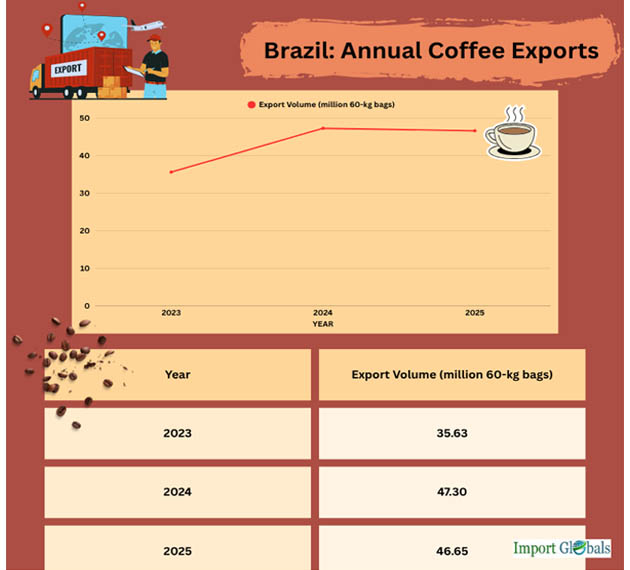 A recent case study by Import Globals on Brazil Import Data states that Brazilian exporters have been forced to reconsider long-standing tactics almost immediately as a result of a sudden increase in U.S. tariffs on coffee imports and fresh, advantageous export certifications from China.