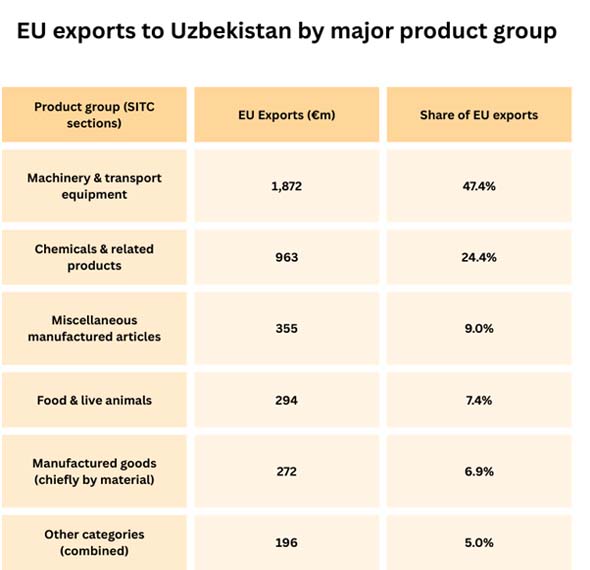 Uzbekistan's exports to the EU are still smaller and more focused, but the make-up of those exports is changing. The government wants to move up from exporting raw materials to processed agri-food, textiles with compliance credentials, and intermediate industrial goods.