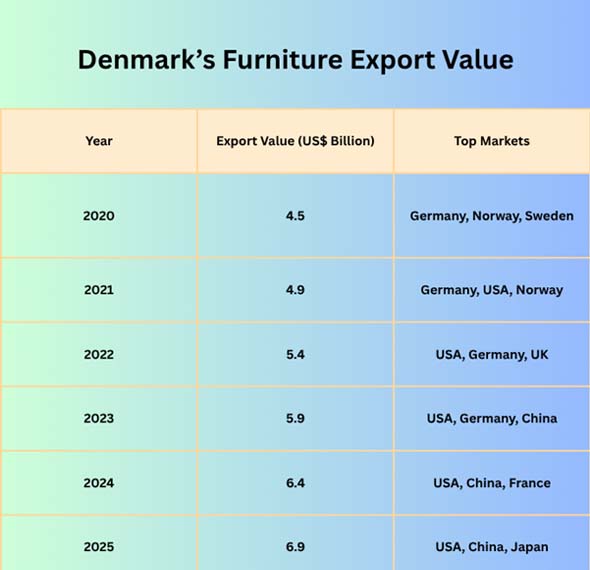 As per Denmark Import Export Global Data by Import Globals, more and more Scandinavian furniture is being bought by China, Japan, and South Korea. Japanese clients greatly like Danish simplicity since their culture values clean, useful design.