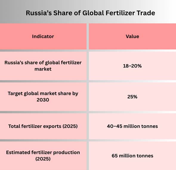 There were conflicts between countries, sanctions, and shifts in global trade flows in 2025–2026, but Russia's fertilizer exports stayed high. In 2025, the government sent more than 40 million tons of mineral fertilizers to other countries in the area.