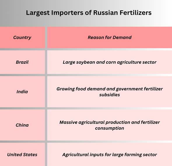 Russia is becoming one of the biggest exporters of fertilizer because nations with big agricultural economies, like India, Brazil, and China, are buying more of it. At the same time, the fertilizer trade has stayed strong because people are worried about food security throughout the world.