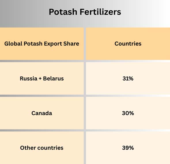 Russia and Belarus jointly export over 31% of all potash in the world, therefore they are very important suppliers to farmers all over the world. Countries with intensive farming systems need to make their land more productive, which keeps the demand for potash high.