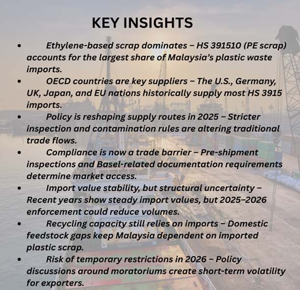- It's apparent that the time of loosely regulated plastic scrap trade into Southeast Asia is over. The policy orientation for Malaysia from 2025 to 2026 points to a change in trade flows under HS 3915 that are more focused on quality, compliance, and environmental responsibility.