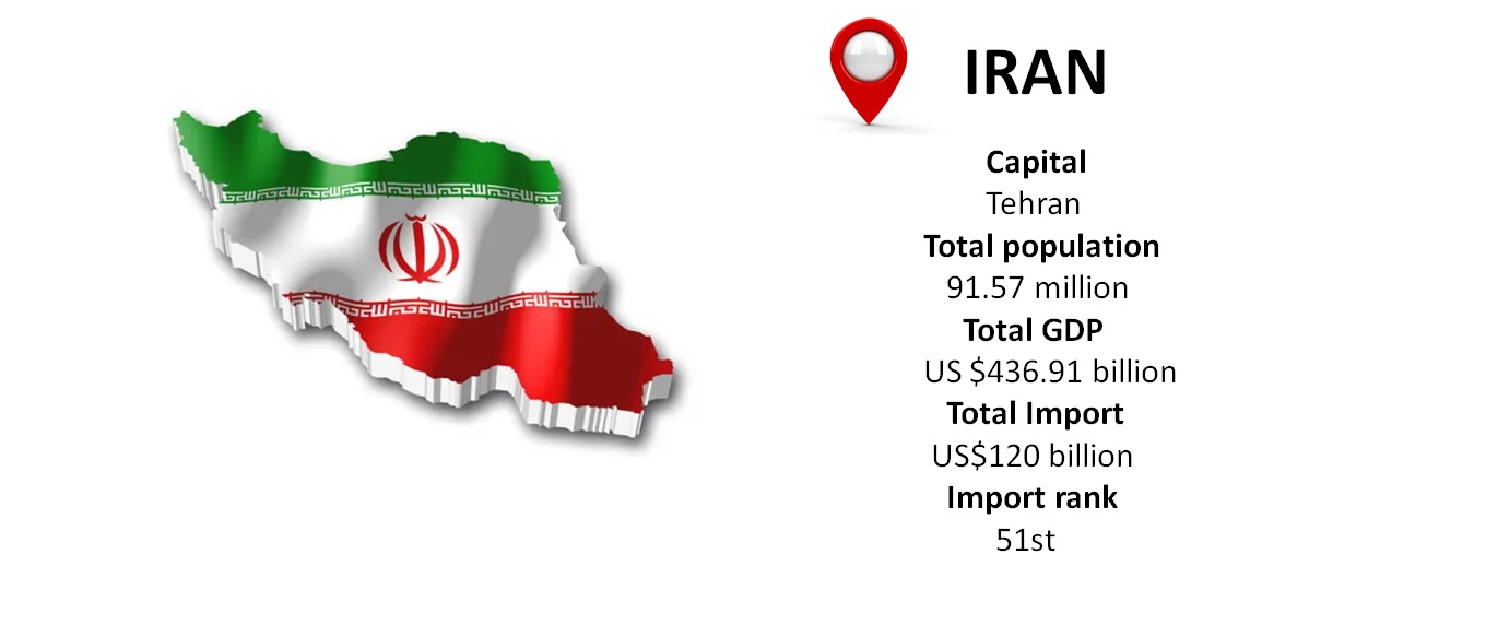 Iran, on the eastern edge of the Middle East, landlocked by Afghanistan, Pakistan, and Iraq in the northeast, east, and south directions, has poised its global import-trade upward trajectory with rapid urbanization and sectoral evolution. Iran Import Customs Shipment Sata represents the country's import valuation at US$120 billion in 2024. The population size and domestic demand, along with the economic isolation and diversification of import sources, are behind the increasing market-provisional growth. As described by Iran Import Trade Data, the imports account for 27% of the country's GDP and rank as the 51st globally leading importer worldwide. Domestic industrial needs, population-driven consumption, technological requirements, and government policies are the attributing factors behind the import market growth, says Iran Customs Data.