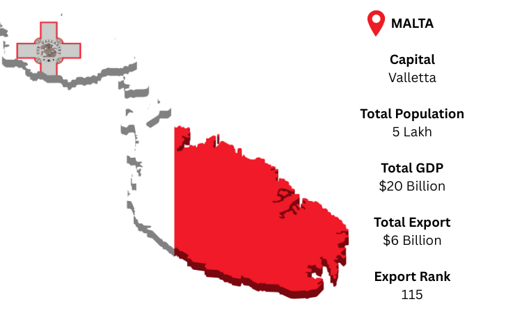 Malta, an island republic at the meeting point of North Africa and Europe, is a major exporter of electronics, medicines, and refined fuels. It is a re-export hub for products traveling across the Mediterranean due to its advantageous position and freeport amenities. The capital, Valletta, is the hub of the country's banking and marine sectors. As per Malta export data, Malta has a population of around 0.5 million and a GDP of about USD 20 billion. It is expected to export over USD 6 billion in 2024, demonstrating its significance in transit commerce and specialized high-value manufacturing.