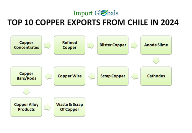 • Blister Copper – Export trade value of Blister Copper from Chile in 2024 – 6 billion US dollars.