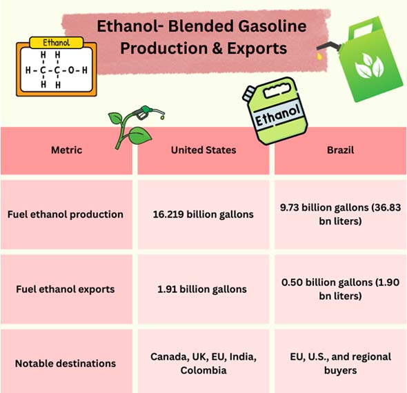 - Latin America: As per Brazil Import Data, Brazil's corn ethanol build-out maintains export capacity while its E30 anchors a sizable local market, which is frequently countercyclical to sugar markets.