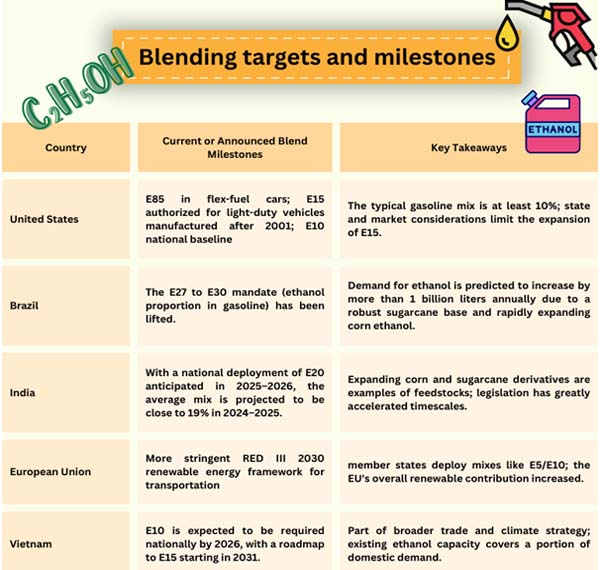 - South Asia: As feedstock becomes scarce, India's drive for a complete E20 rollout reorganizes regional flows for corn, sugar, and ethanol and may spur additional plant investment and imports.