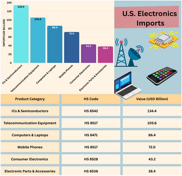 Electronics are one of the biggest and most important categories that the US imports, ranging from laptops and smartphones to semiconductors and telecommunications equipment.