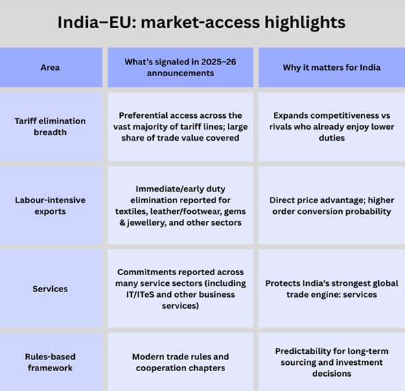 The India–EU deal is important because it addresses two long-standing problems for Indian exporters:
