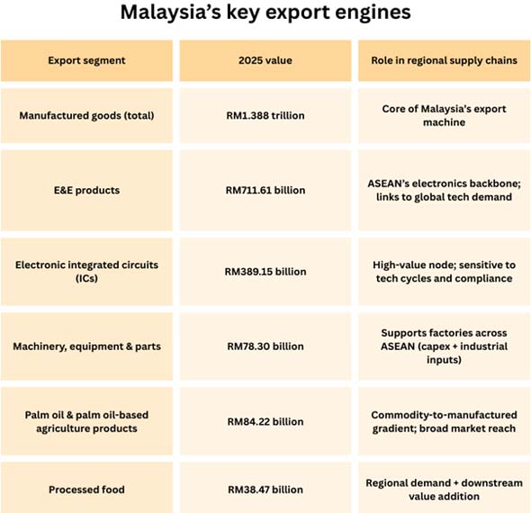Malaysia's outstanding trade performance in 2025 proves that it is a key manufacturing and export hub in ASEAN. It imports a lot to make food, exports a lot in the E&E and industrial categories, and it benefits from ASEAN integration tools that make it easier for goods to move between countries in the area.