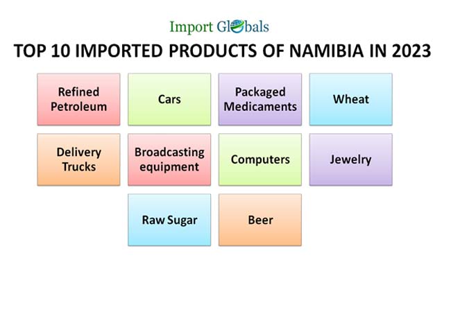 Ans. Refined petroleum is the top imported product of Namibia in 2023.