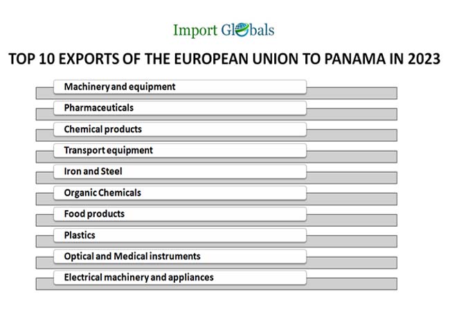 • Transport equipment – Valuation of Transport equipment exports from the European Union to Panama in 2023 – 800 million US dollars.