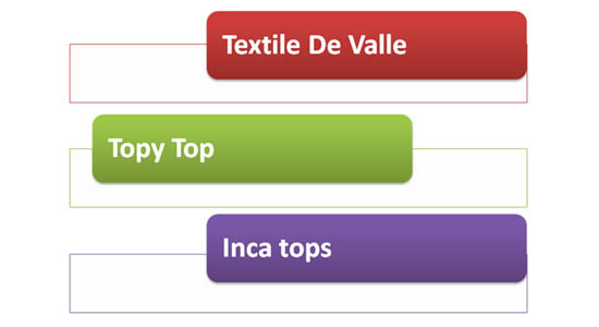 2. Topy Top – Topy Top established in 1983 has recorded itself as a crucial role player in the overall export industry of Peru. The innovative designs and the use of advanced technology to produce premium quality clothing at competitive prices have fueled the authority in producing diversity of the global essentials. The annual trade revenue share of the company in the textile export of 2024 is around 16%.