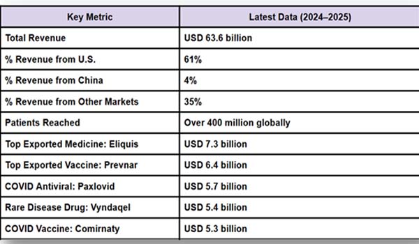 Pfizer's revenue trend appears to be stabilized as of 2025. According to its forecast, adjusted earnings per share will range from USD 2.80 to USD 3.00, while yearly revenues will continue to fall between USD 61 and USD 64 billion. The company's varied export portfolio and licensing-driven growth in Asia will continue to produce robust trade flows even as COVID-related sales normalize.
