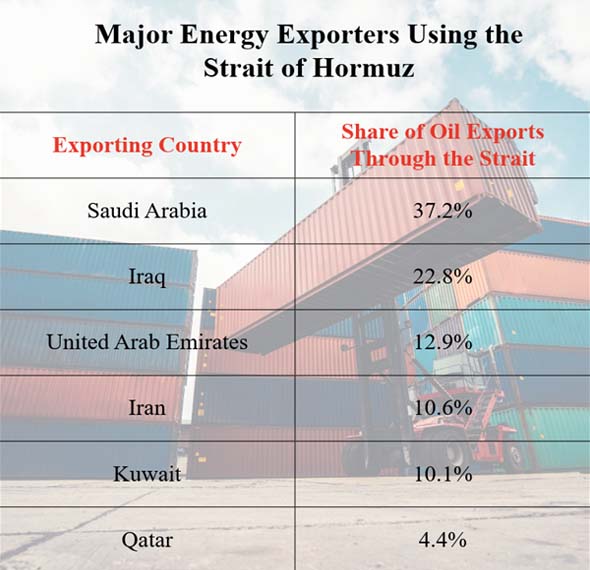 Some of the biggest Gulf oil producers that use the canal as their main export route are Saudi Arabia, Iraq, the United Arab Emirates, Kuwait, Qatar, and Iran. So, any issues in the area right away affect energy markets all around the world. The Strait of Hormuz is an important section of the world's energy supply chain because most of the oil that travels through it comes from these Gulf countries.