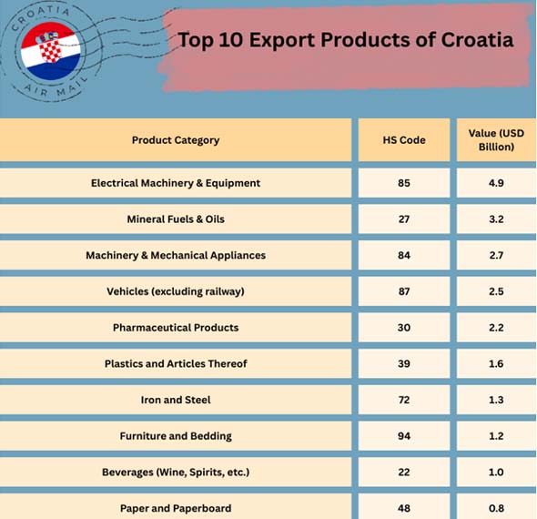 According to Import Globals' Croatia Import Data, the country's economy has grown because to its location, well-developed infrastructure, and participation in the EU. Electrical machinery and equipment (HS Code 85) were Croatia's most important export in 2024.