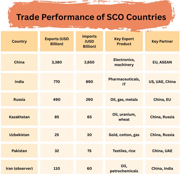 Ans. The SCO covers about 40% of the world’s population and one-third of global GDP, making it a key driver of trade connectivity across Eurasia.