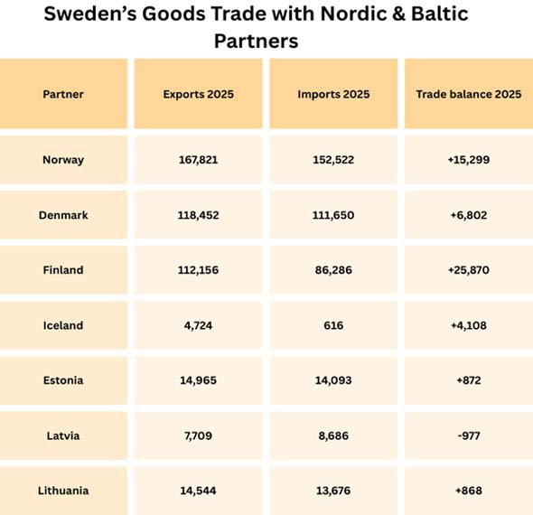 Trade between Sweden and the Nordic Region and Baltic States in 2025–26