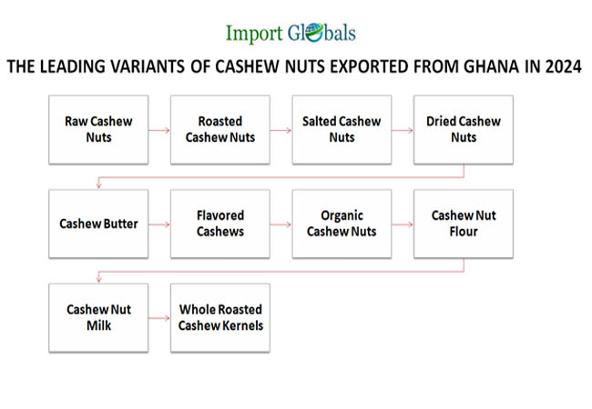 Que. What is the top exported variant of Cashew Nuts from Ghana in 2024?