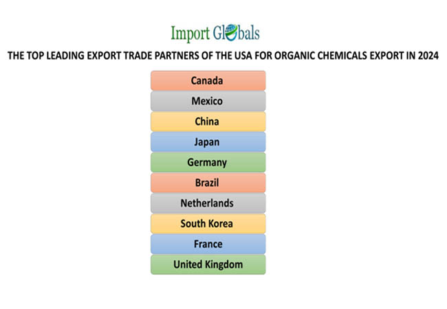 1. Canada – According to the Canada Import Data, the valuation of the organic chemical exports from the USA in 2024 – 25 billion US dollars.