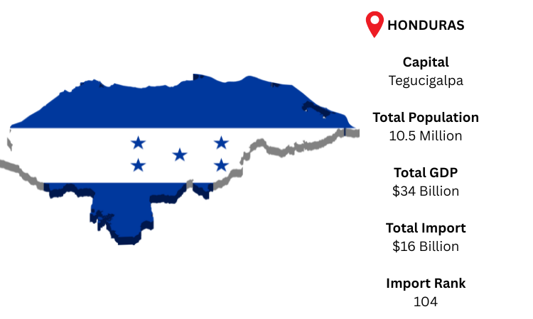 The Central American nation of Honduras, which has access to both the Caribbean Sea and the Pacific Ocean, is mostly dependent on imports to supply its needs for consumer products, machinery, and energy. The capital, Tegucigalpa, is connected to important international markets by the nation's ports. As per Honduras import data, with a population of around 10.5 million and a GDP of about USD 34 billion, Honduras is heavily dependent on international commerce, with an expected USD 16 billion in imports in 2024.